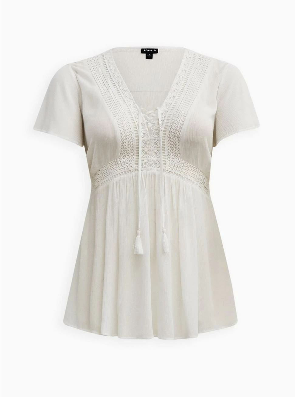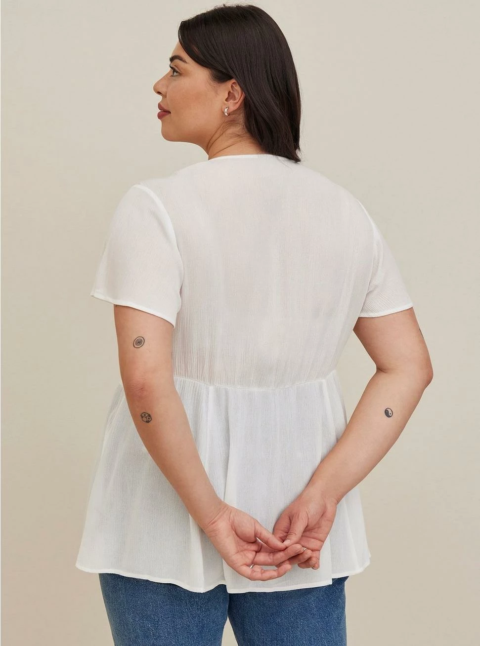- Crinkle Gauze woven fabric: Lightweight, textured, breathable and still totally opaque.