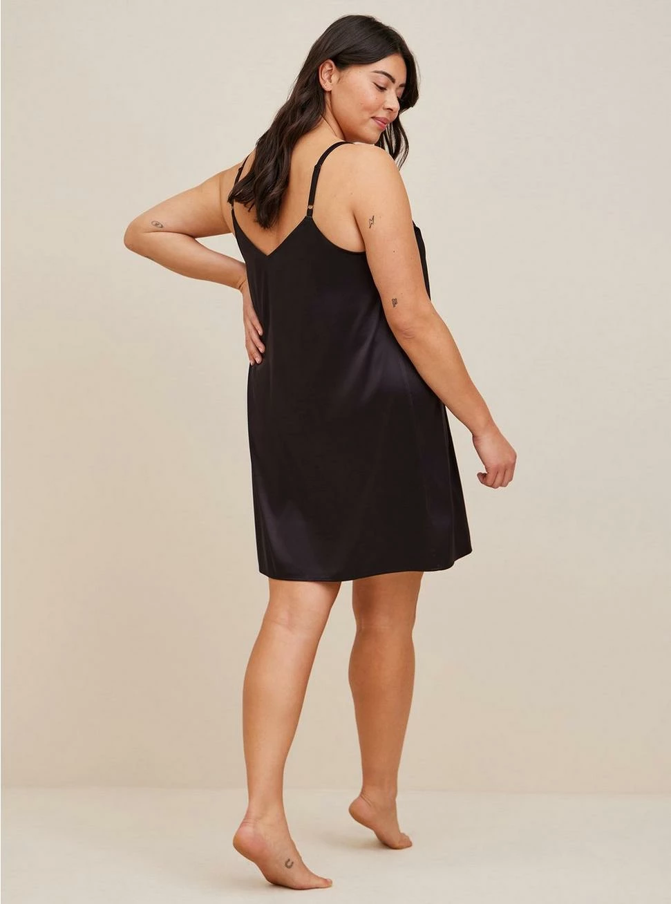 - Dream Satin woven fabric: A soft, stretchy satin that’s smooth and cool against your skin.