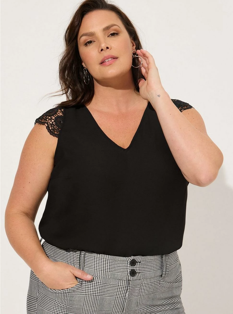 - V-shaped neckline.