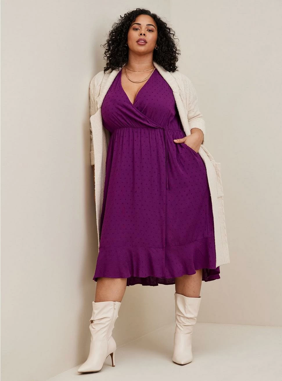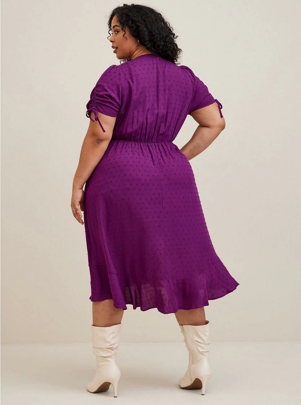 - Swiss dot textured woven fabric.