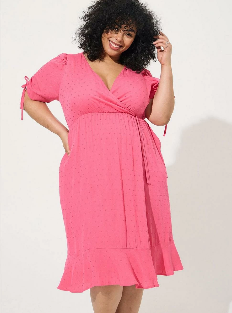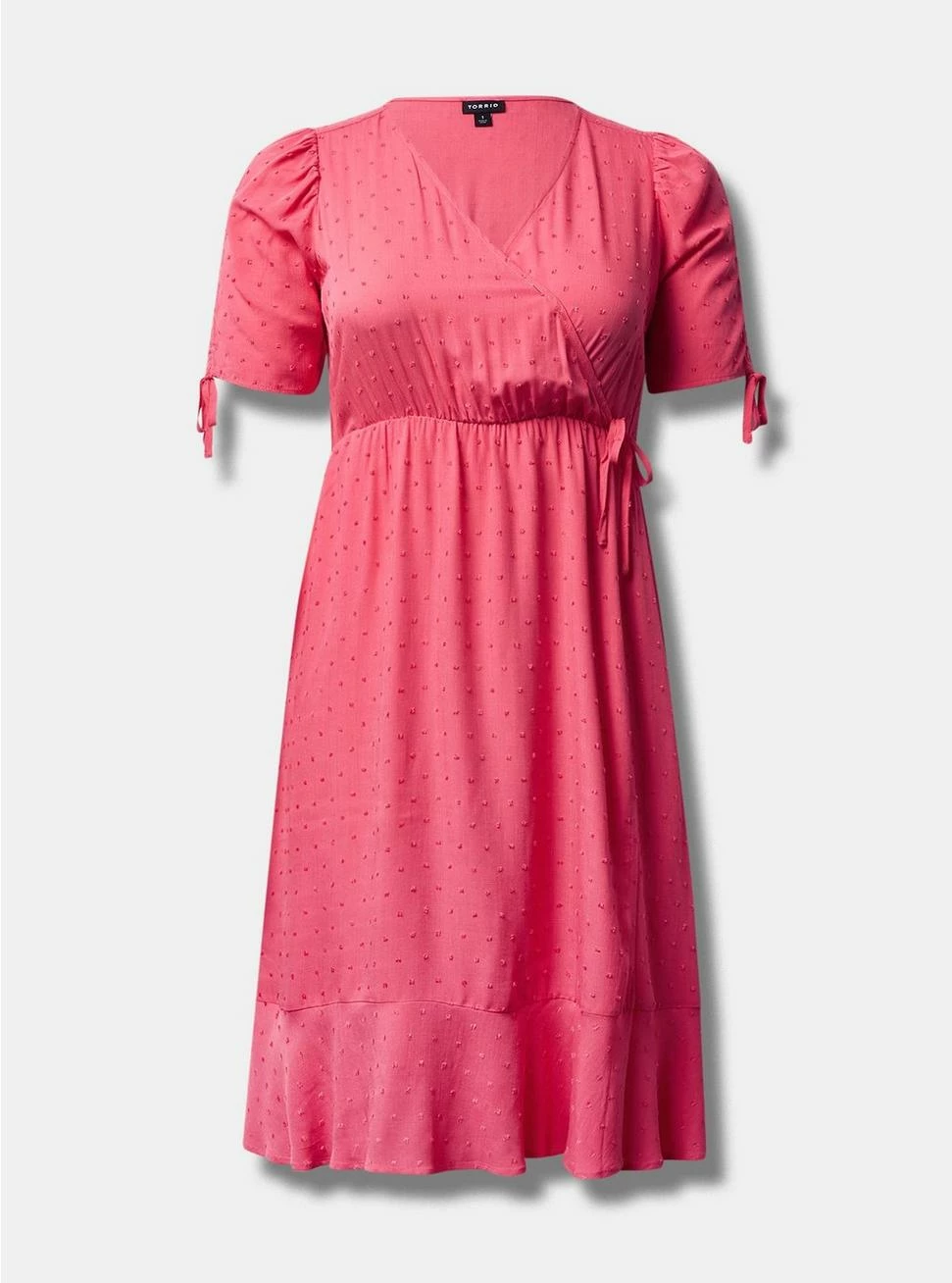 - Swiss dot textured woven fabric.