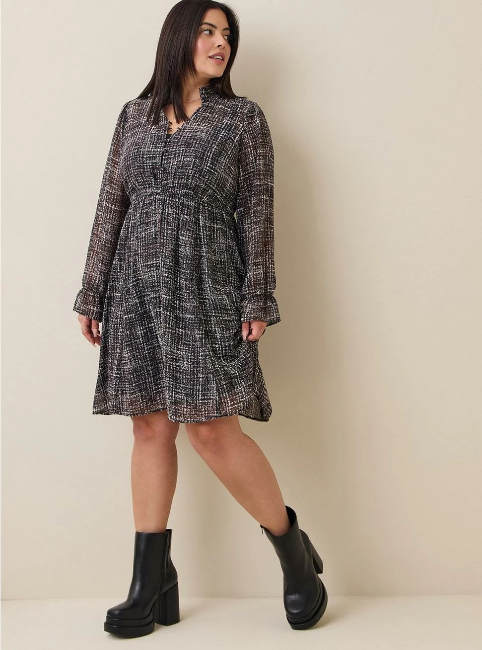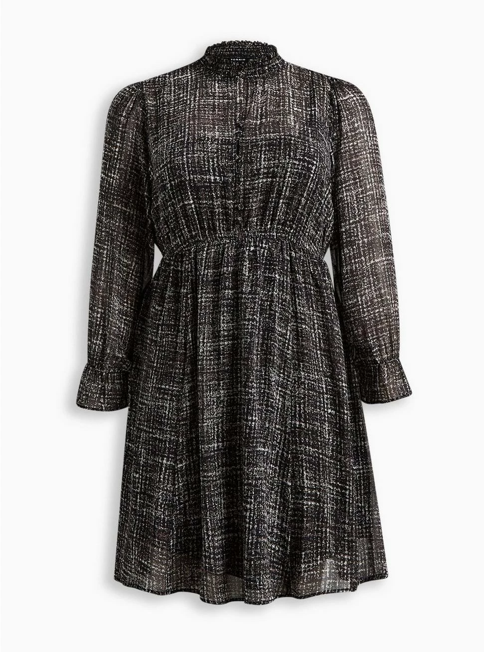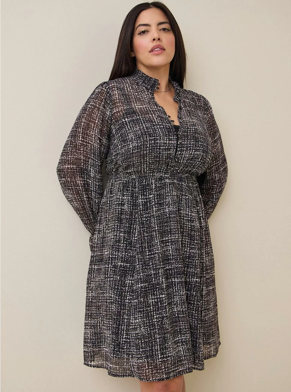 - Long sleeves with ruffle trim.Â