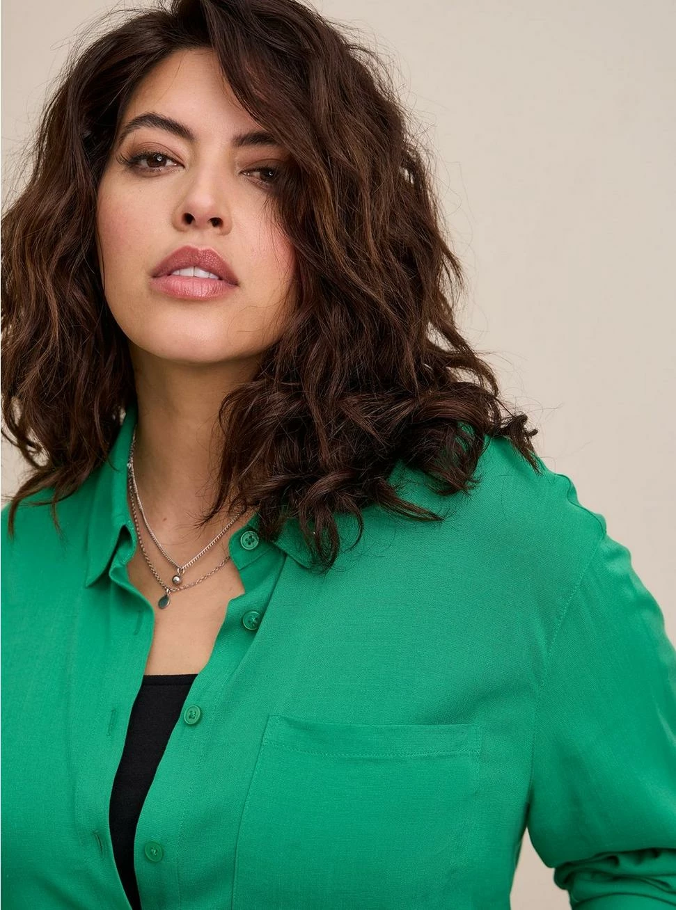 - Rayon Slub woven fabric: A soft, linen-like feel that drapes perfectly on the body with a touch of stretch. Perfect for when you want to be polished but comfy at the same time. Â