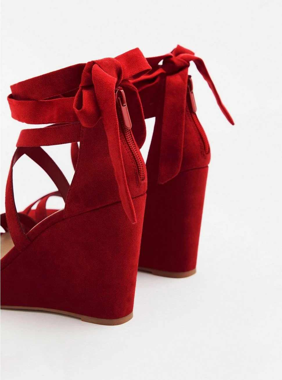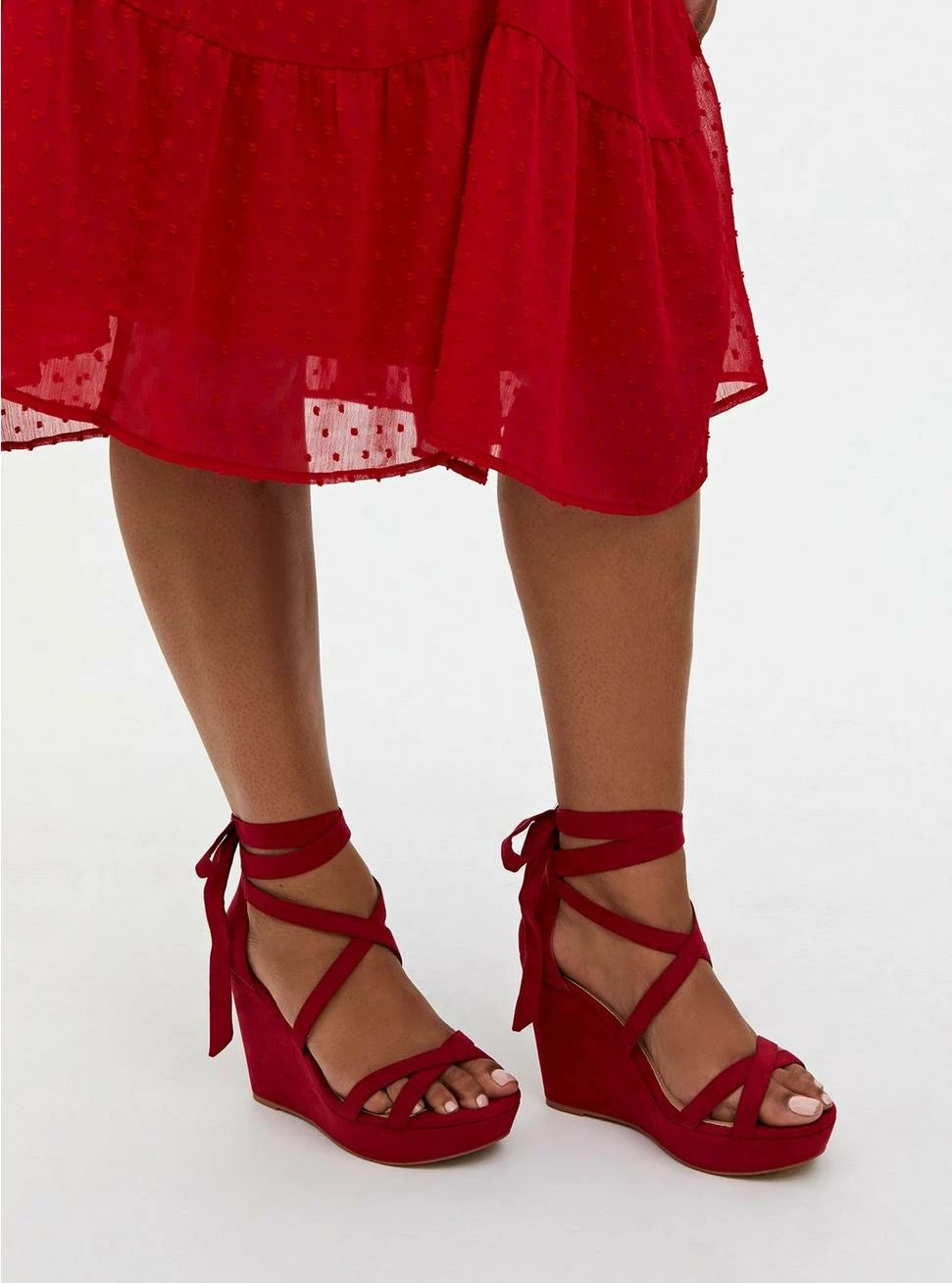 Lift yourself straight into a whole new look with these darling wedge sandals, featuring self-tie ankle straps that add versatile appeal.
