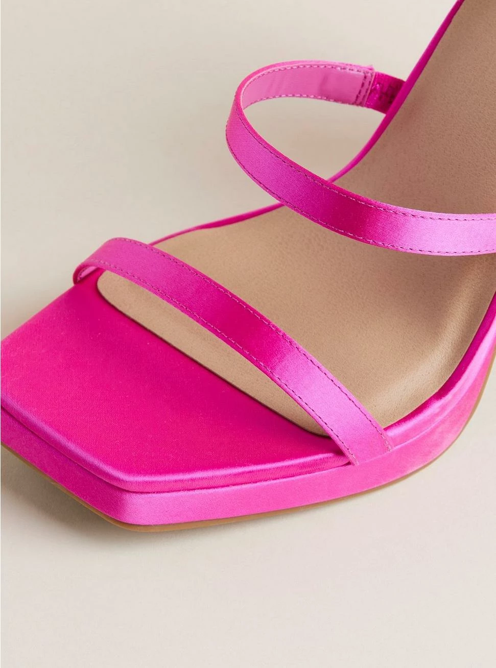 - Strappy upper with square toe.